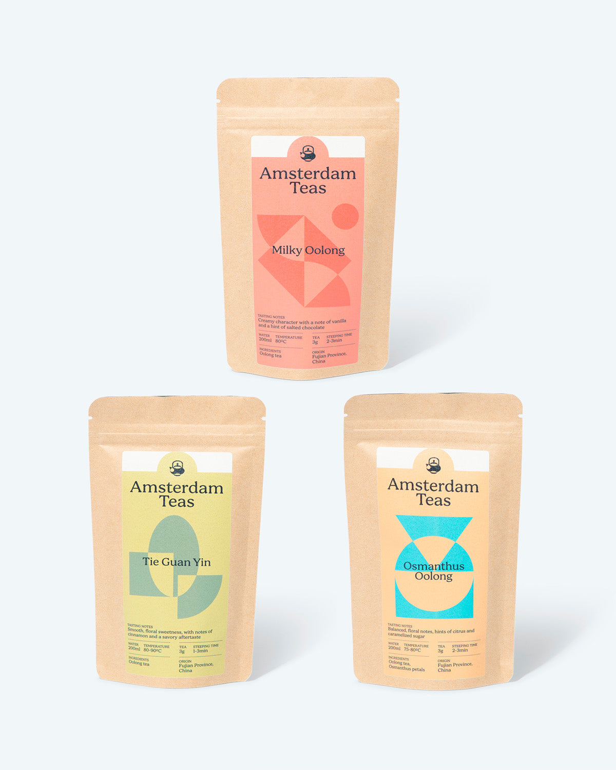 Een kennismaking met onze oolong thee met drie van onze populairste theesoorten: Milky oolong, Osmanthus oolong en Tie Guan Yin, elk een zakje van 25g (75g totaal). Deze drie oolongs laten de verscheidenheid aan opmerkelijke smaken zien die in oolong thee te vinden zijn.