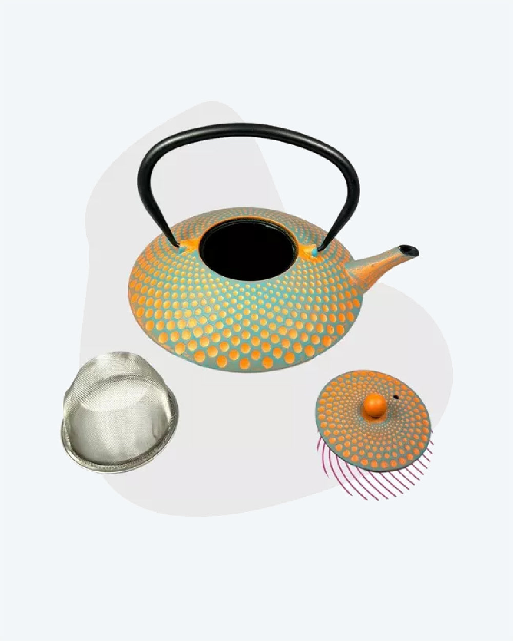 A colorful 1 liter pot handworked using traditional Japanese sand-casting technique.